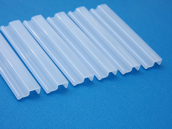 PC塑料異型材冷頂擠出加工生產過程就是從機頭模具出料后直接進入水槽浸水或噴水冷卻,使PC物料從模具出口迅速降溫冷卻, 達到冷卻定型的效果,使用PC冷頂硬頂擠出法加工的產品外表較亮,光澤度好。PC熱拉擠出是PC料從機頭內出來經過定型模冷卻定型或軟PC直接進水冷卻定型。
